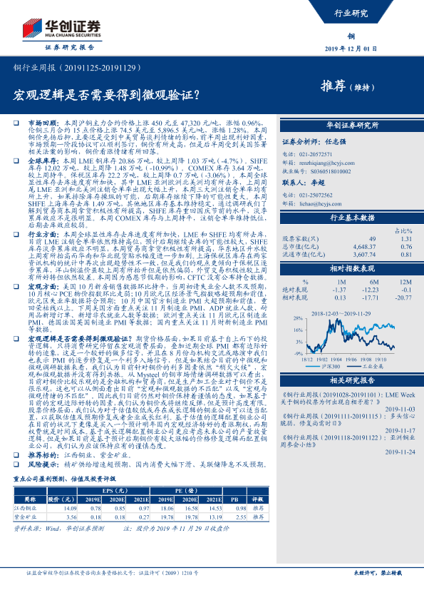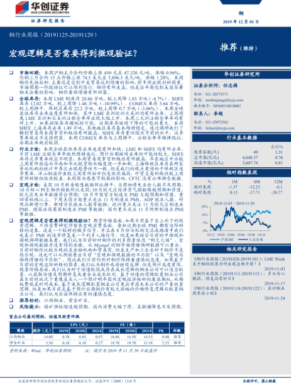 【华创证券】【20191201】20191201-华创证券-铜行业周报:宏观逻辑是否需要得到微观验证?-21页