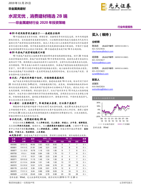 【光大证券】【20191129】非金属建材行业2020年投资策略:水泥无忧,消费建材精选2B端-38页