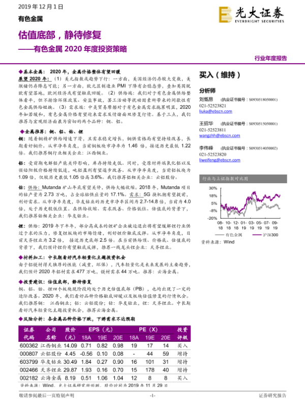 【光大证券】【20191201】有色金属2020年度投资策略:估值底部,静待修复-43页