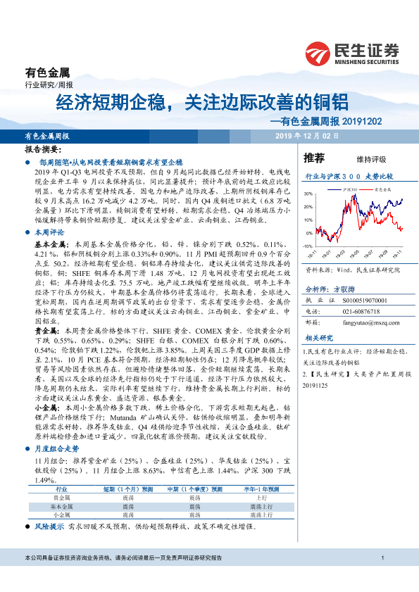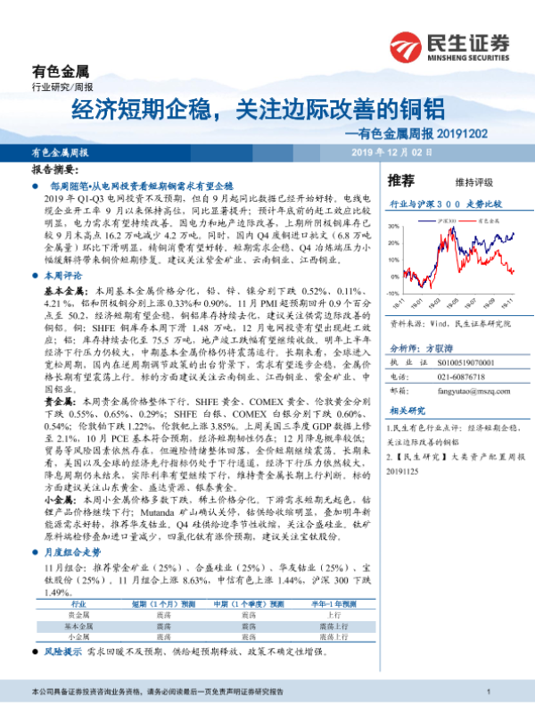 【民生证券】【20191202】20191202-民生证券-有色金属周报:经济短期企稳,关注边际改善的铜铝-30页