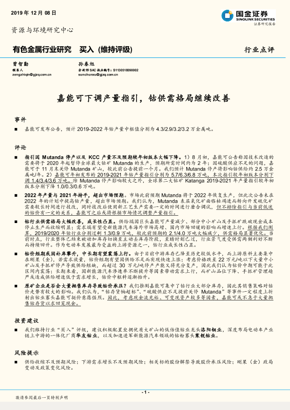 【国金证券】【20191208】嘉能可下调产量指引,钴供需格局继续改善-3页