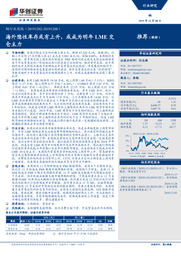 【华创证券】【20191208】铜行业周报:海外隐性库存或有上升,或成为明年LME交仓主力-20页