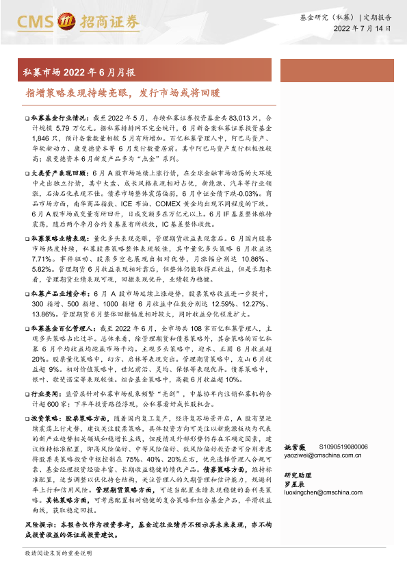 【海通证券】【20220714】私募市场2022年6月月报:指增策略表现持续亮眼,发行市场或将回暖-18页