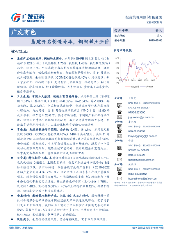 【广发证券】【20191208】广发有色投资策略周报:基建开启制造补库,铜钼稀土涨价-26页