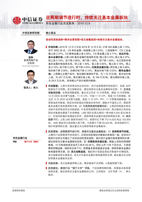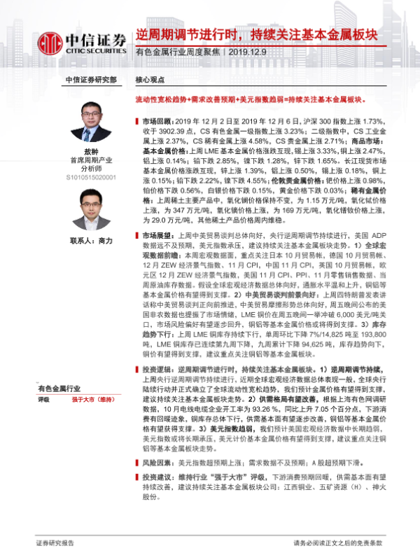 【中信证券】【20191209】20191209-中信证券-有色金属行业周度聚焦:逆周期调节进行时,持续关注基本金属板块-17页