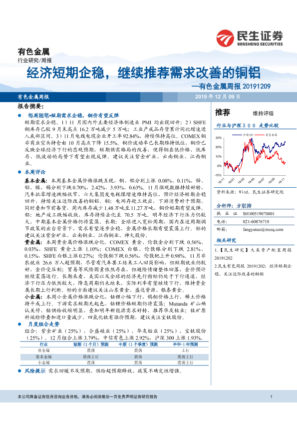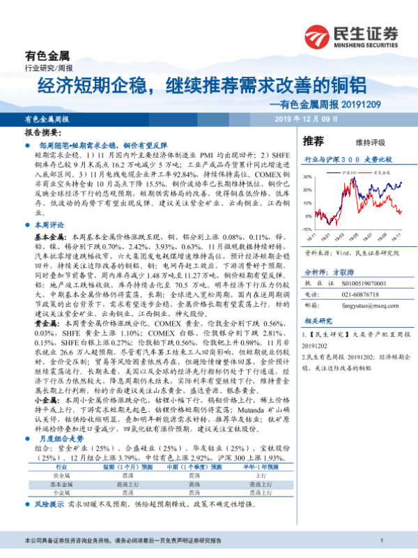 【民生证券】【20191209】20191209-民生证券-有色金属周报:经济短期企稳,继续推荐需求改善的铜铝-30页