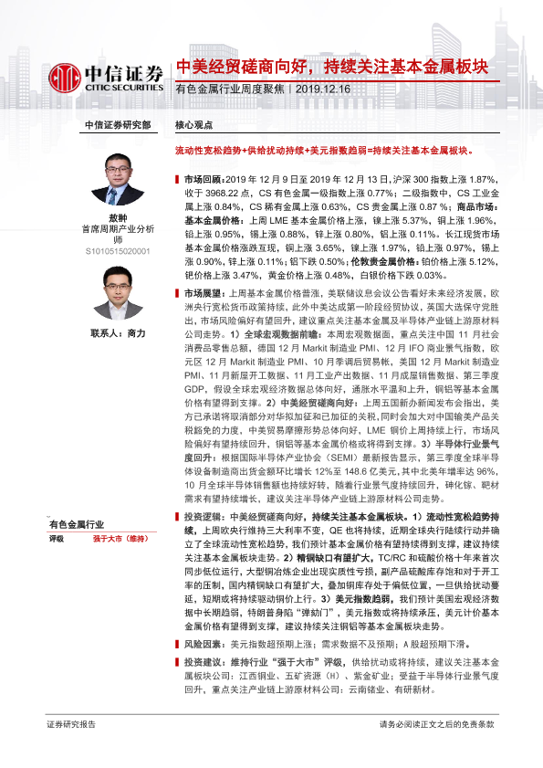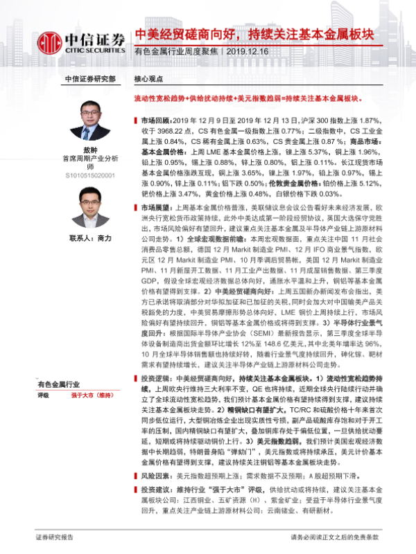 【中信证券】【20191216】20191216-中信证券-有色金属行业周度聚焦:中美经贸磋商向好,持续关注基本金属板块-17页