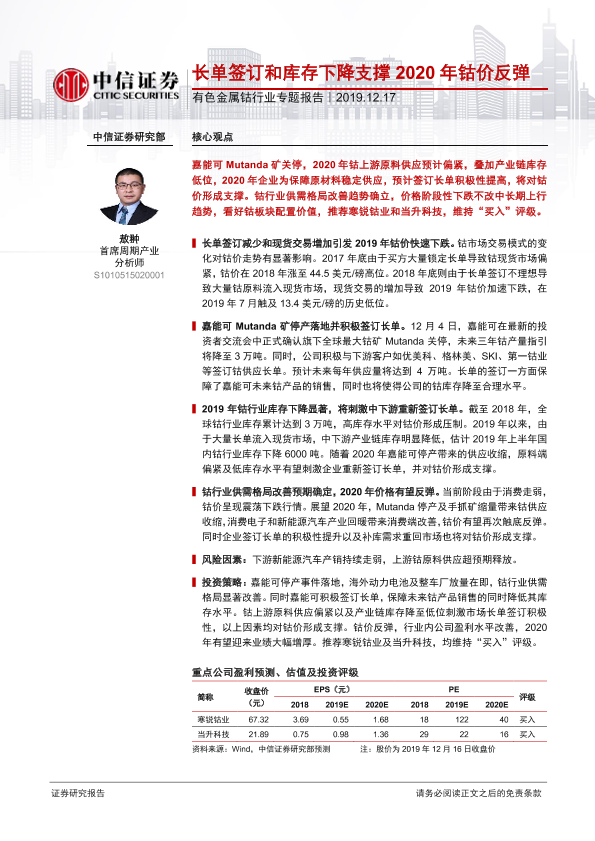 【中信证券】【20191217】长单签订和库存下降支撑2020年钴价反弹-16页