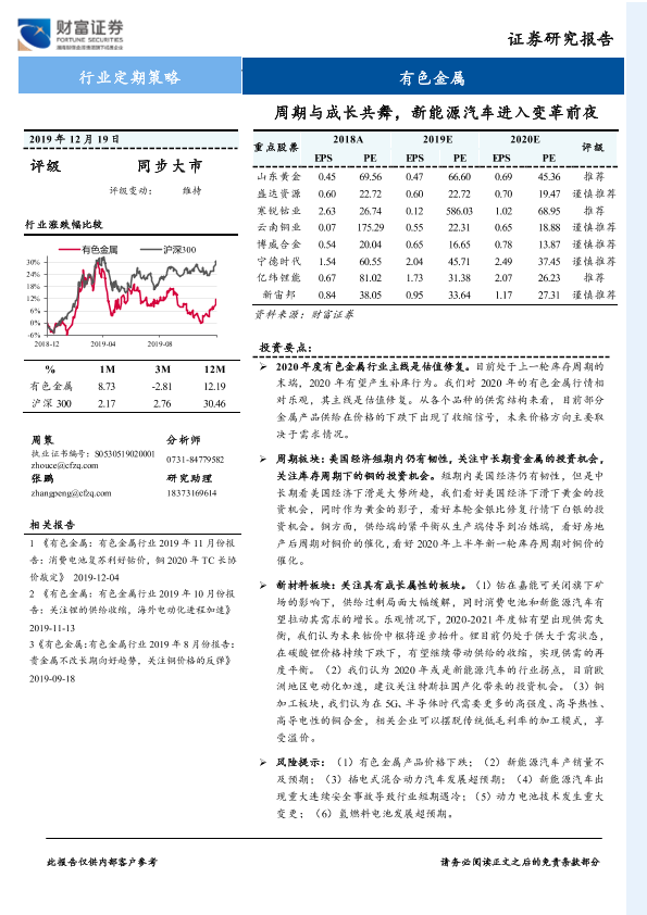 【财信证券】【20191219】20191219-财信证券-有色金属行业定期策略:周期与成长共舞,新能源汽车进入变革前夜-26页