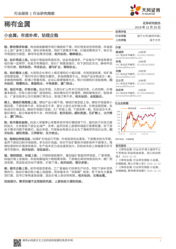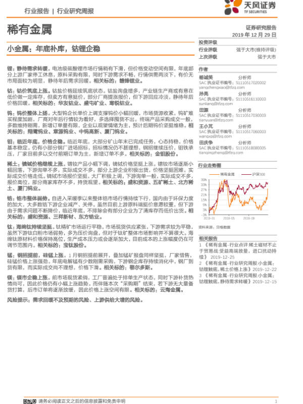 【天风证券】【20191229】20191229-天风证券-稀有金属-小金属:年底补库,钴锂企稳-15页
