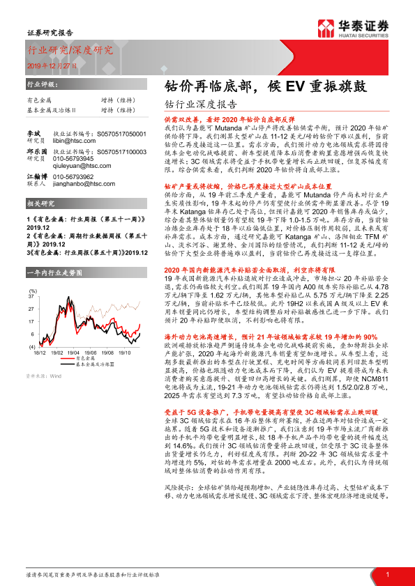 【华泰证券】【20191227】钴行业深度报告:钴价再临底部,候EV重振旗鼓-24页
