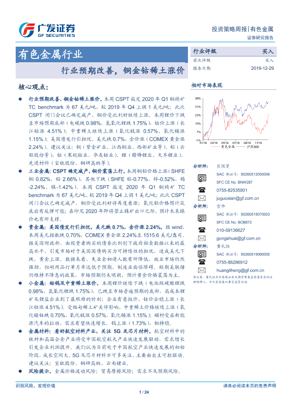 【广发证券】【20191229】20191229-广发证券-有色金属行业投资策略周报:行业预期改善,铜金钴稀土涨价-24页