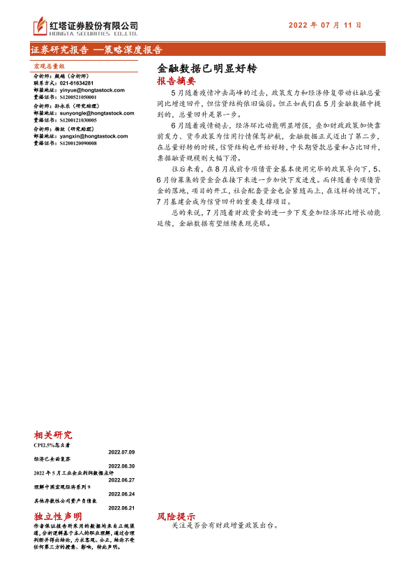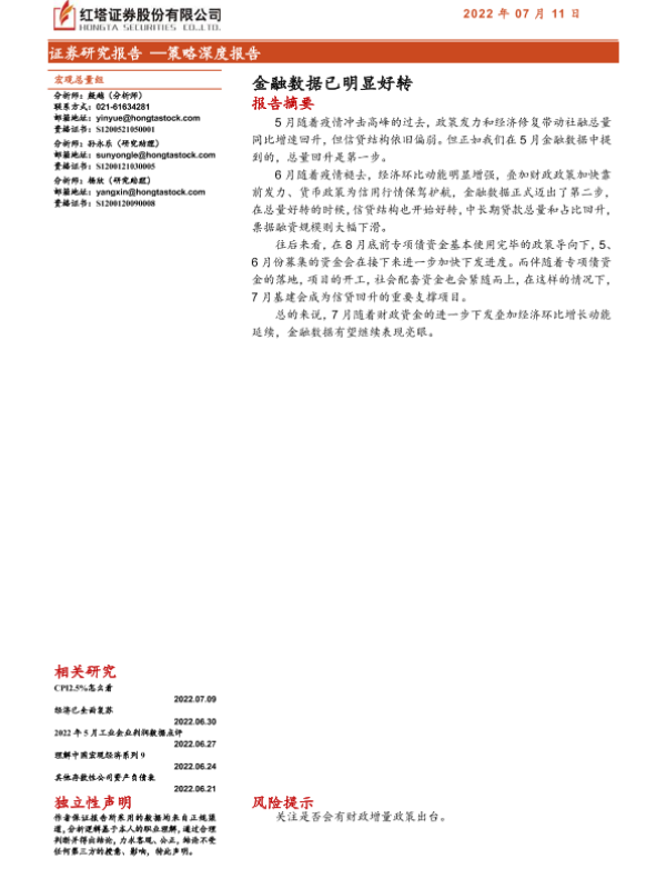 【红塔证券】【20220711】策略深度报告:金融数据已明显好转-15页