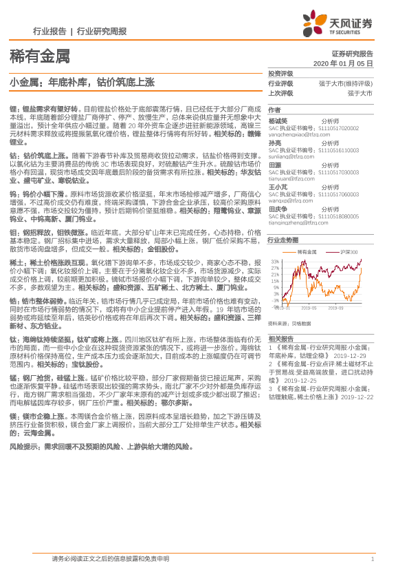 【天风证券】【20200105】20200105-天风证券-稀有金属行业研究周报:小金属:年底补库,钴价筑底上涨-16页