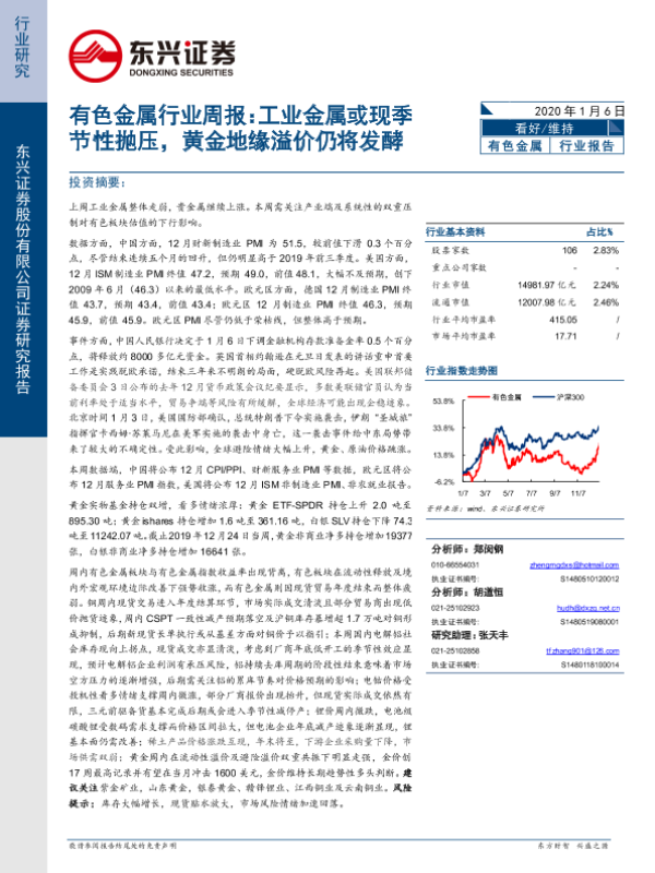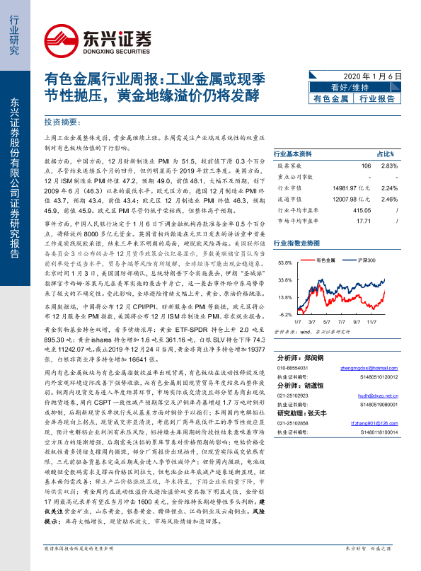 【东兴证券】【20200106】20200106-东兴证券-有色金属行业周报:工业金属或现季节性抛压,黄金地缘溢价仍将发酵-16页