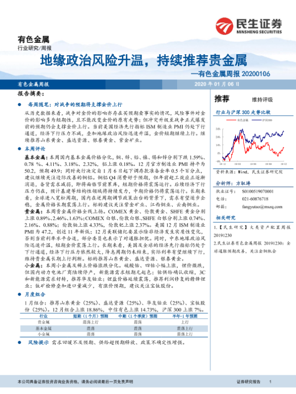 【民生证券】【20200106】20200106-民生证券-有色金属周报:地缘政治风险升温,持续推荐贵金属-18页