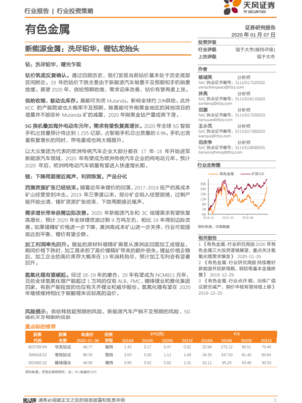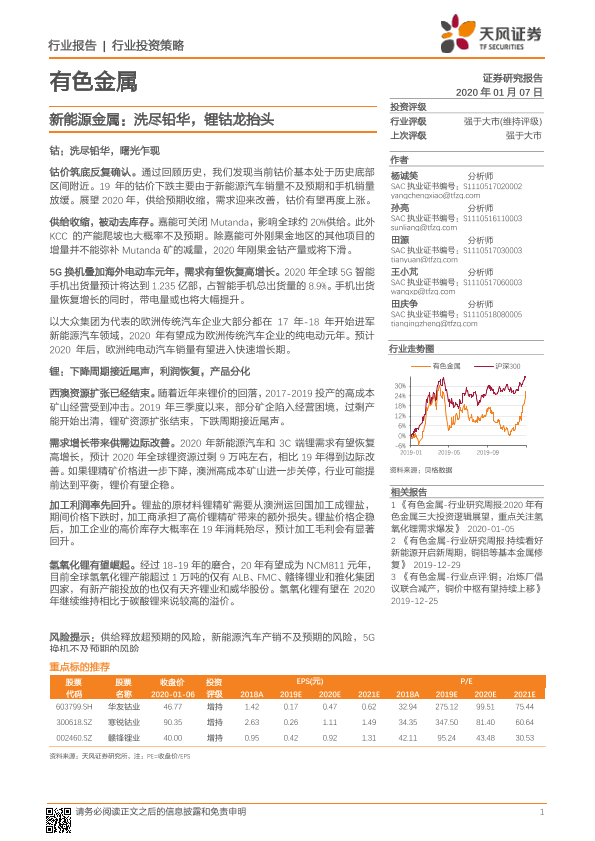 【天风证券】【20200107】20200107-天风证券-新能源金属行业投资策略:洗尽铅华,锂钴龙抬头-14页