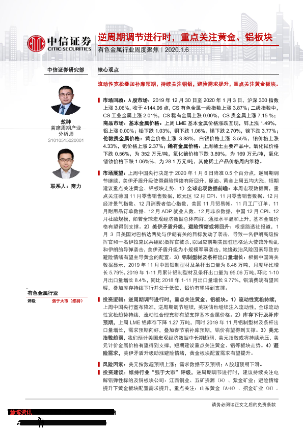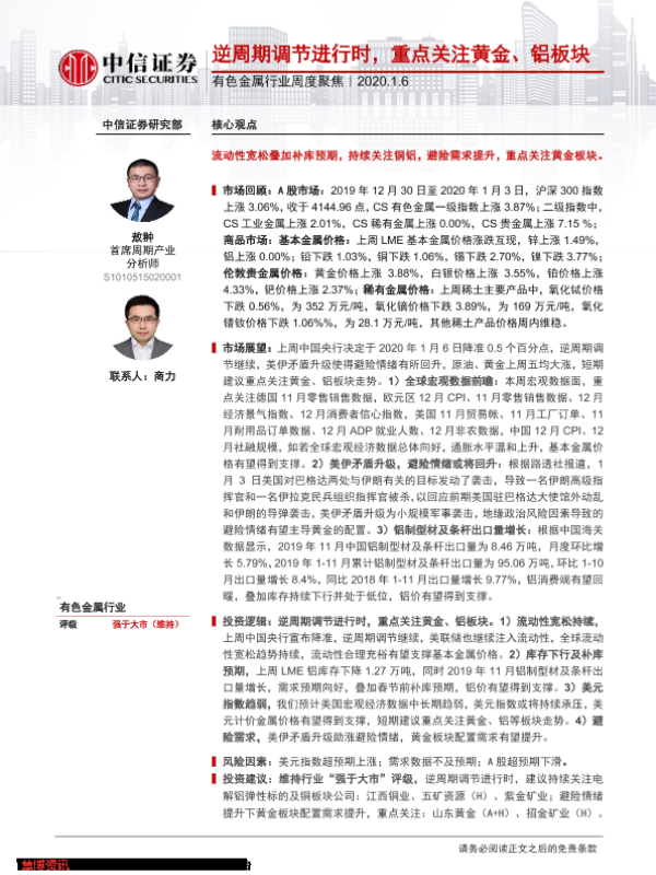 【中信证券】【20200106】20200106-中信证券-有色金属行业周度聚焦:逆周期调节进行时,重点关注黄金、铝板块-16页