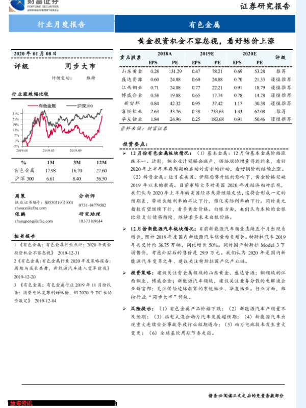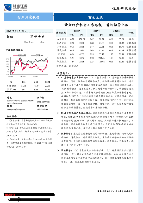 【财信证券】【20200108】20200108-财信证券-有色金属行业月度报告:黄金投资机会不容忽视,看好钴价上涨-13页