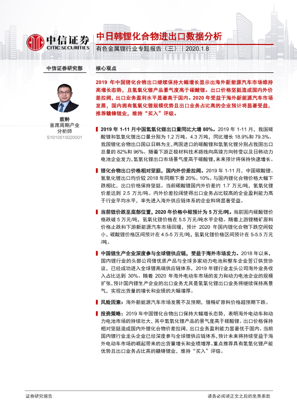 【中信证券】【20200108】有色金属锂行业专题报告(三):中日韩锂化合物进出口数据分析-15页