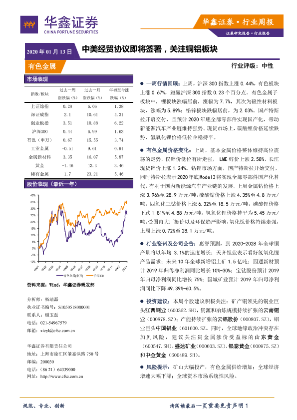 【华鑫证券】【20200113】20200113-华鑫证券-有色金属行业周报:中美经贸协议即将签署,关注铜铝板块-11页