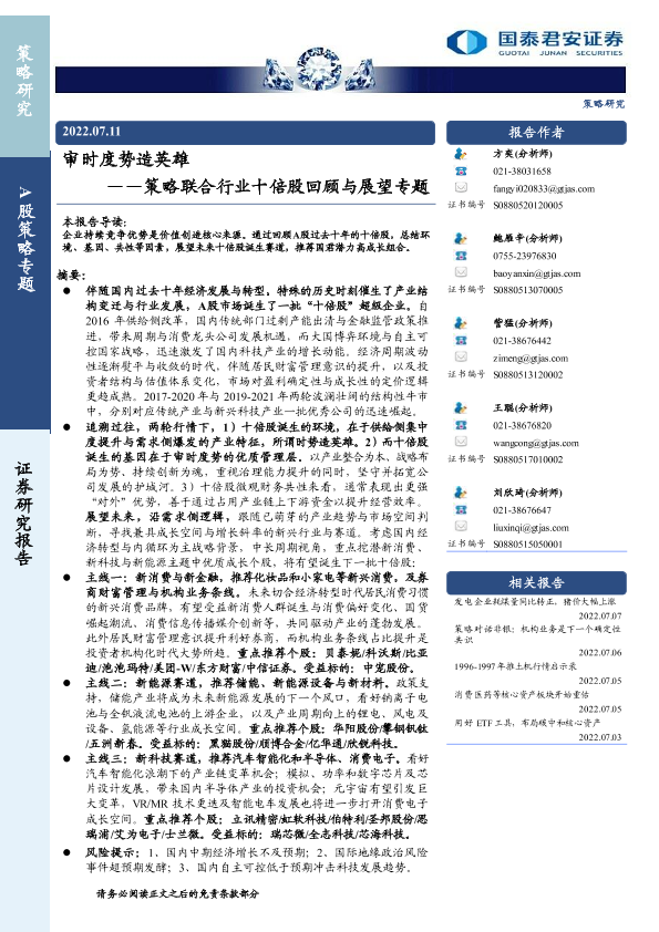 【国泰君安证券】【20220711】审时度势造英雄 ——策略联合行业十倍股回顾与展望专题-83页
