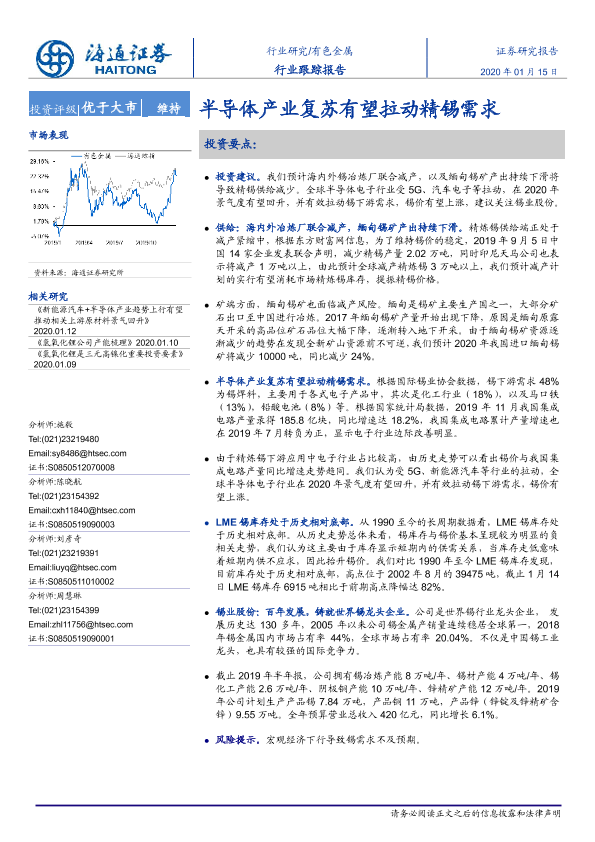 【海通证券】【20200115】20200115-海通证券-有色金属行业跟踪报告:半导体产业复苏有望拉动精锡需求-7页