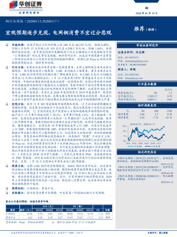 【华创证券】【20200119】20200119-华创证券-铜行业周报:宏观预期逐步兑现,电网铜消费不宜过分悲观-21页