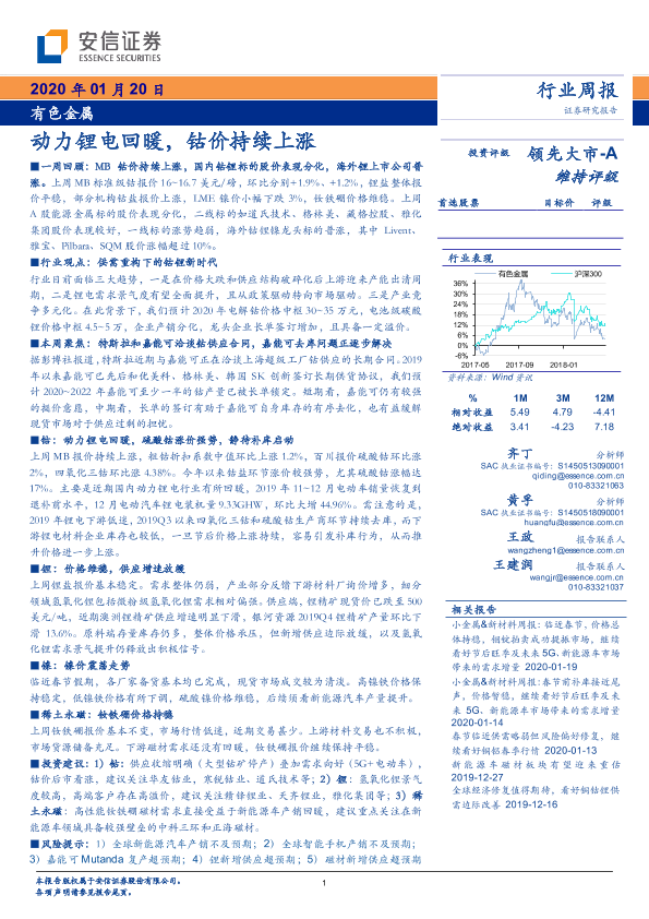 【安信证券】【20200120】20200120-安信证券-有色金属行业周报:动力锂电回暖,钴价持续上涨-26页