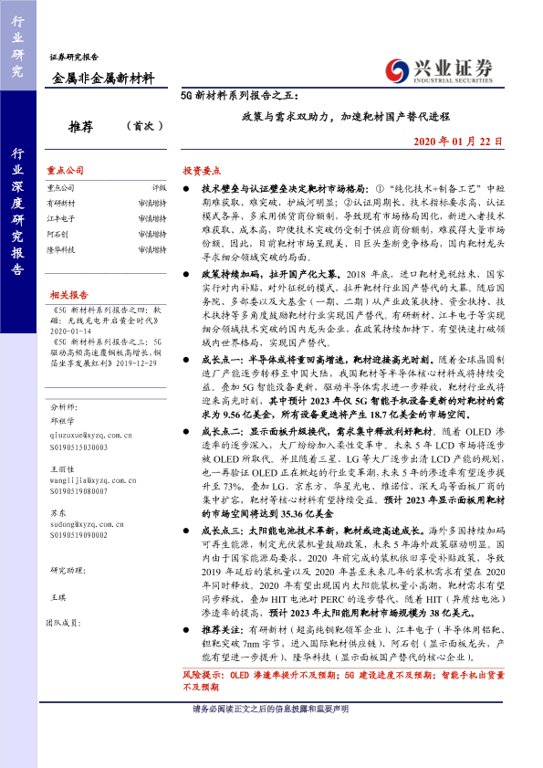 【兴业证券】【20200122】5G新材料系列报告之五:政策与需求双助力,加速靶材国产替代进程-33页