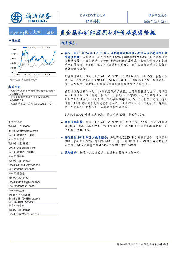 【海通证券】【20200202】20200202-海通证券-有色金属行业周报:贵金属和新能源原材料价格表现坚挺-8页