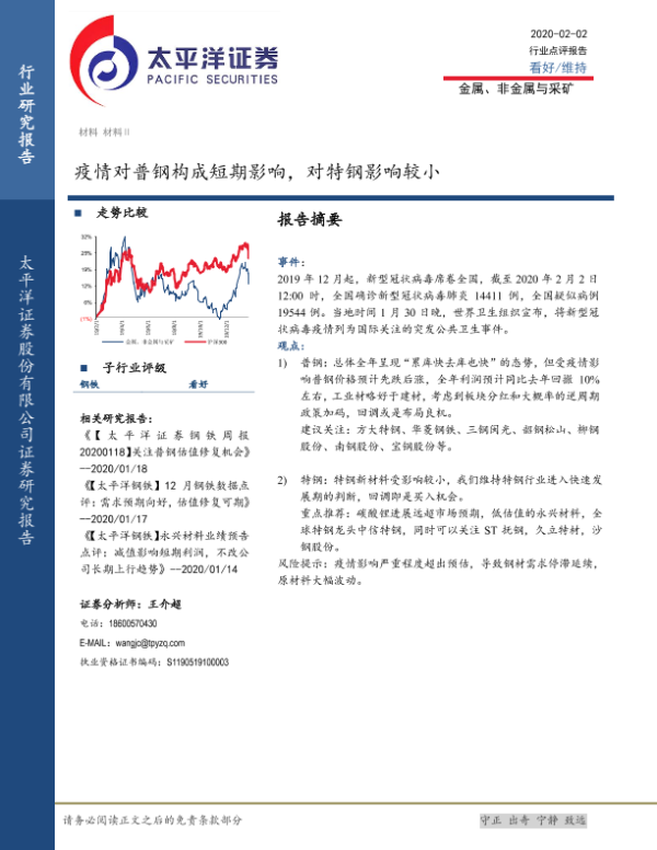 【太平洋证券】【20200202】疫情对普钢构成短期影响,对特钢影响较小-9页
