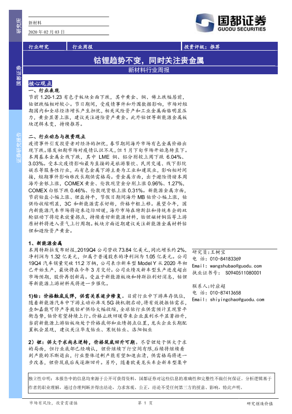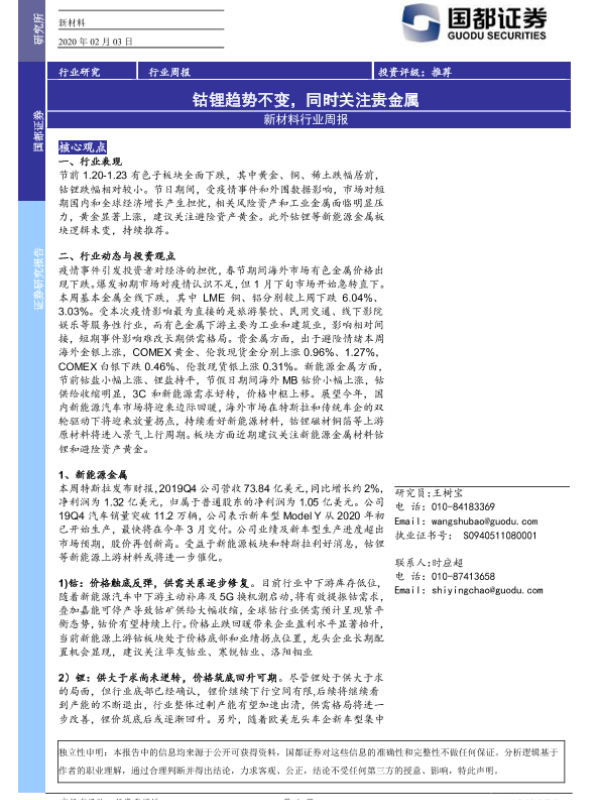 【国都证券】【20200203】新材料行业周报:钴锂趋势不变,同时关注贵金属-3页