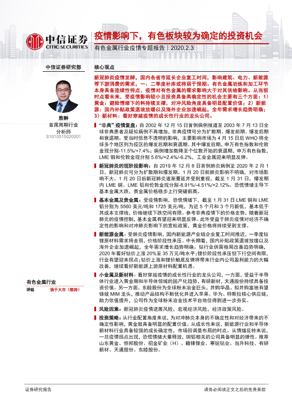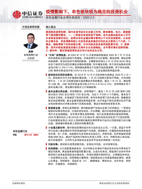 【中信证券】【20200203】疫情影响下,有色板块较为确定的投资机会-14页