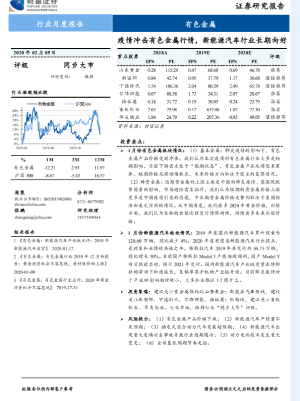 【财信证券】【20200205】财信证券-有色金属行业月度报告:疫情冲击有色金属行情,新能源汽车行业长期向好-12页