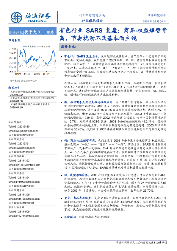 【海通证券】【20200204】有色行业SARS复盘:商品-权益短暂背离,节奏扰动不改基本面主线-7页