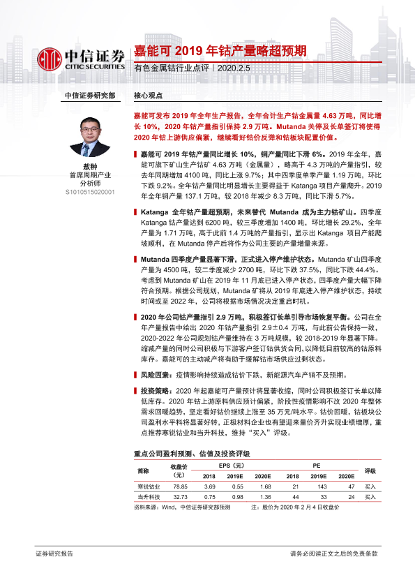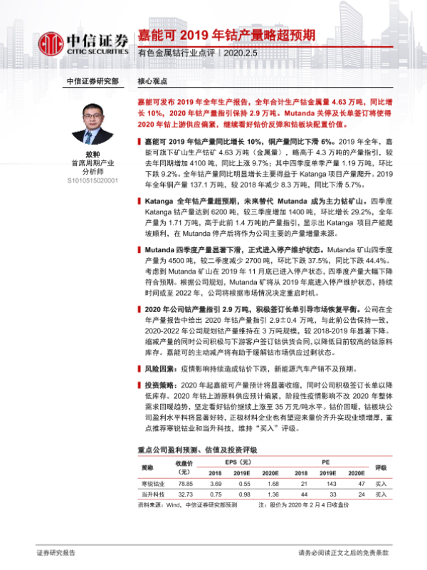 【中信证券】【20200205】有色金属钴行业点评:嘉能可2019年钴产量略超预期-2页