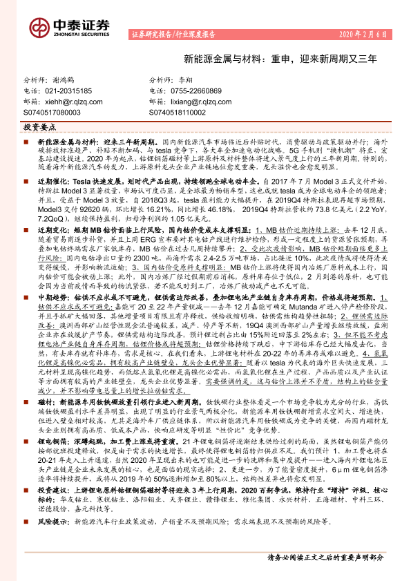 【中泰证券】【20200206】新能源金属与材料:重申,迎来新周期又三年-28页