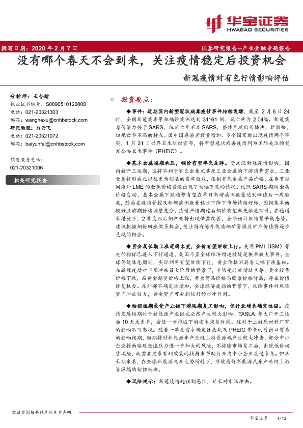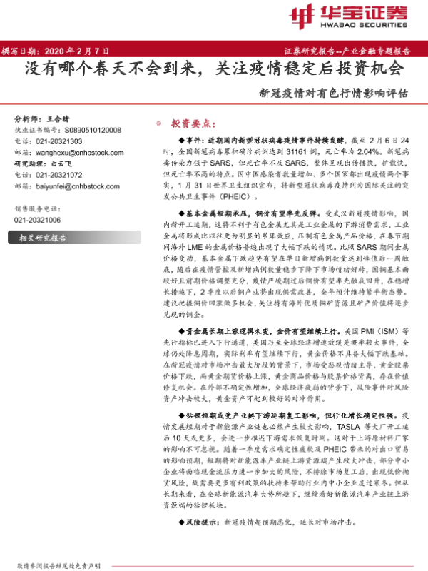 【华宝证券】【20200207】新冠疫情对有色行情影响评估:没有哪个春天不会到来,关注疫情稳定后投资机会-13页