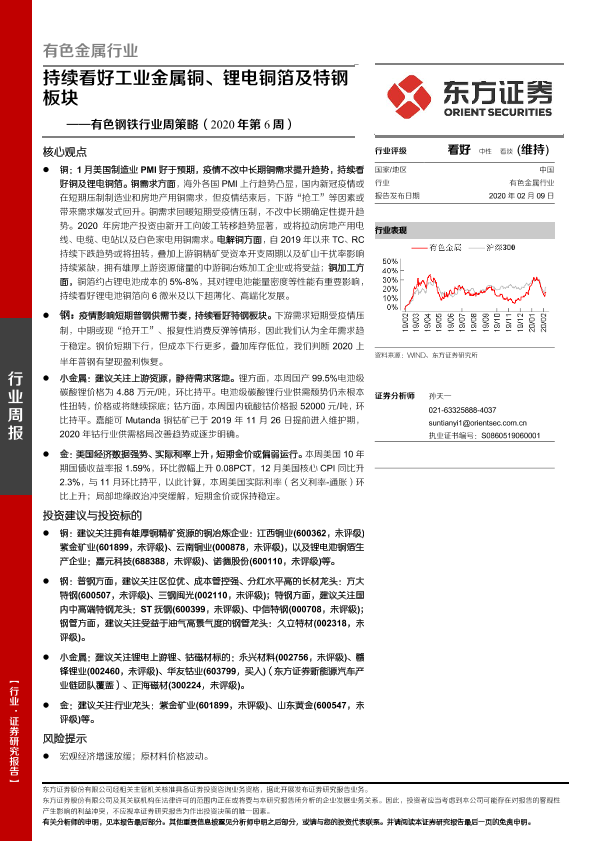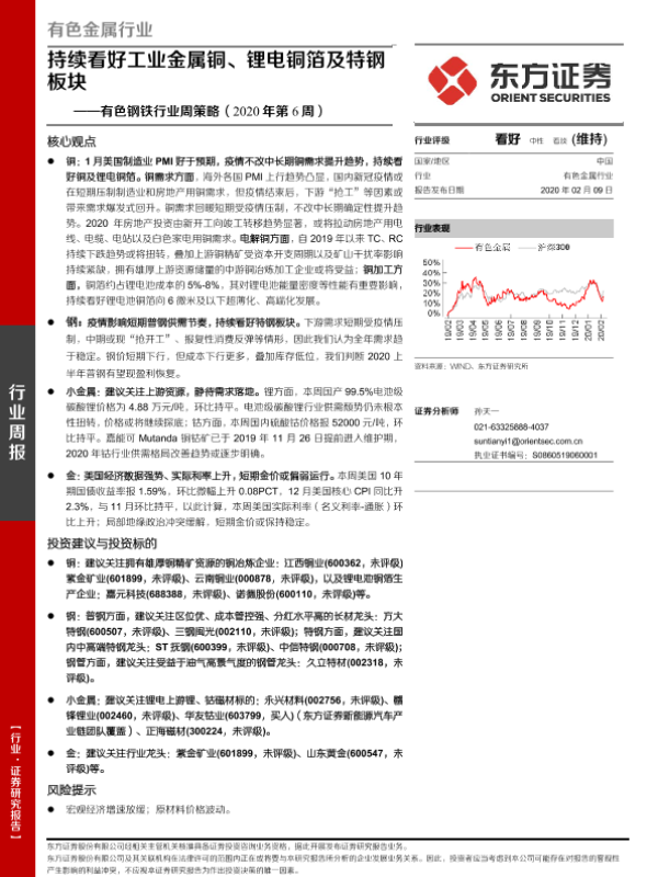 【东方证券】【20200209】20200209-东方证券-有色钢铁行业周策略(2020年第6周):持续看好工业金属铜、锂电铜箔及特钢板块-23页