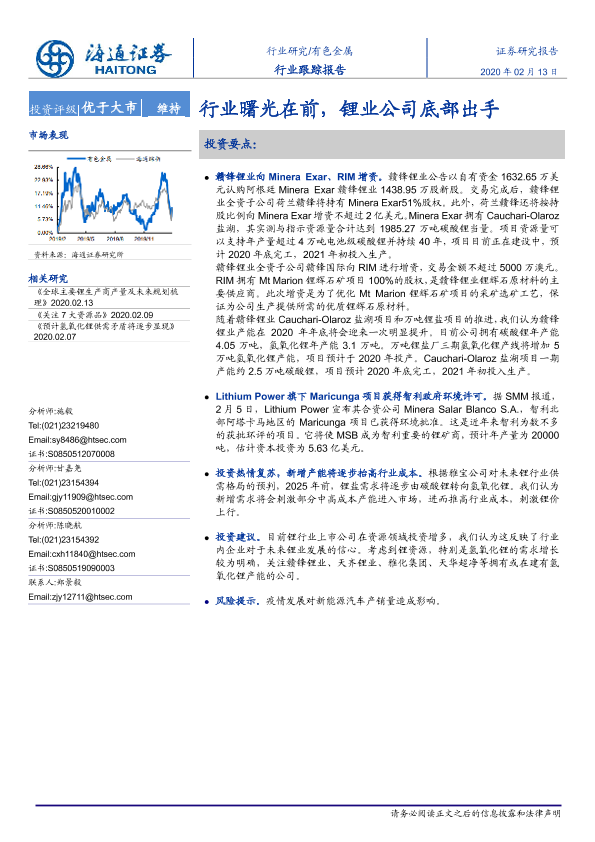 【海通证券】【20200213】20200213-海通证券-有色金属行业跟踪报告:行业曙光在前,锂业公司底部出手-3页