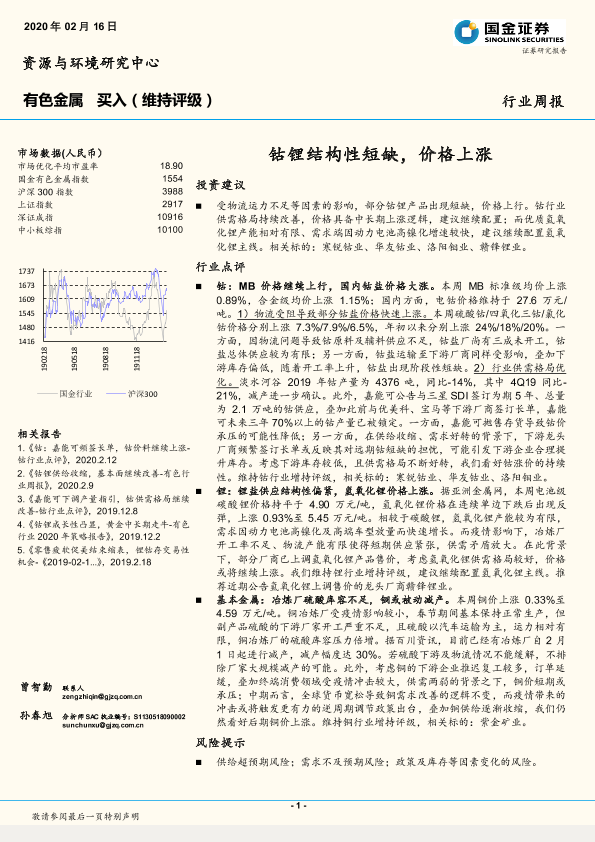 【国金证券】【20200216】20200216-国金证券-有色金属行业周报:钴锂结构性短缺,价格上涨-8页