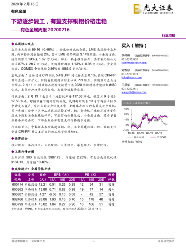 【光大证券】【20200216】下游逐步复工,有望支撑铜铝价格走稳-12页