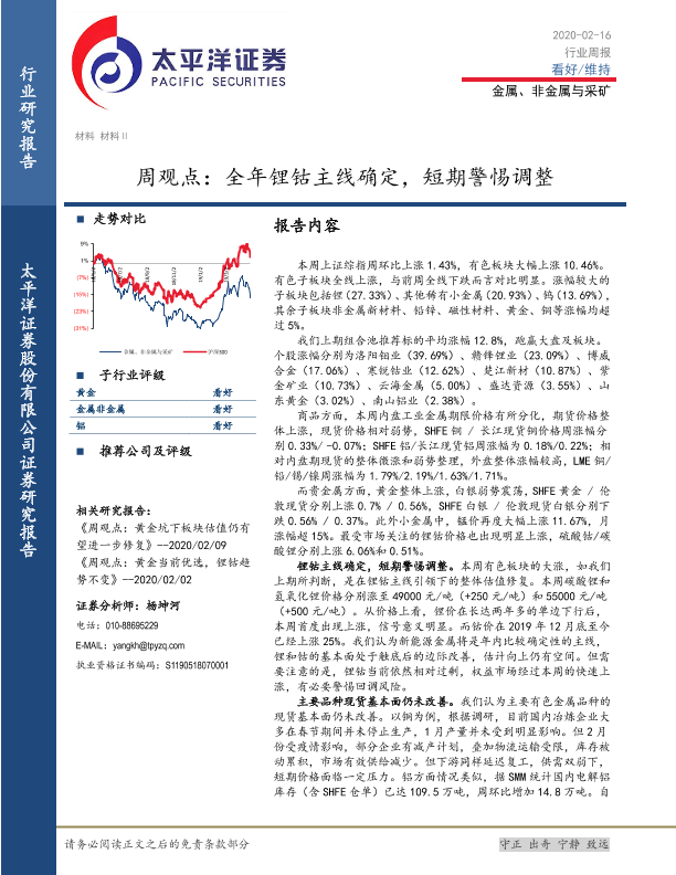 【太平洋证券】【20200216】20200216-太平洋-金属、非金属与采矿周观点:全年锂钴主线确定,短期警惕调整-4页