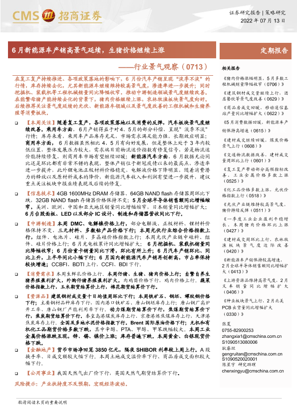 【海通证券】【20220713】行业景气观察:6月新能源车产销高景气延续,生猪价格继续上涨-32页