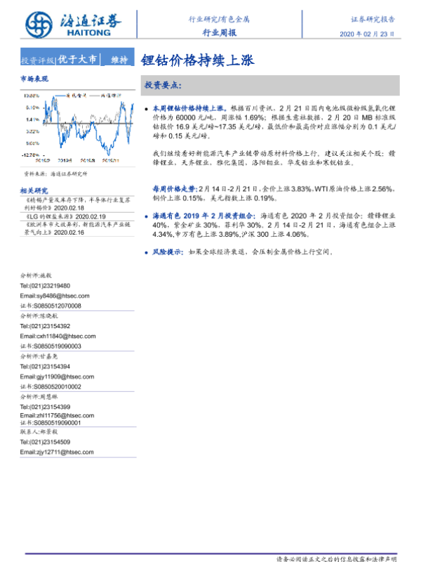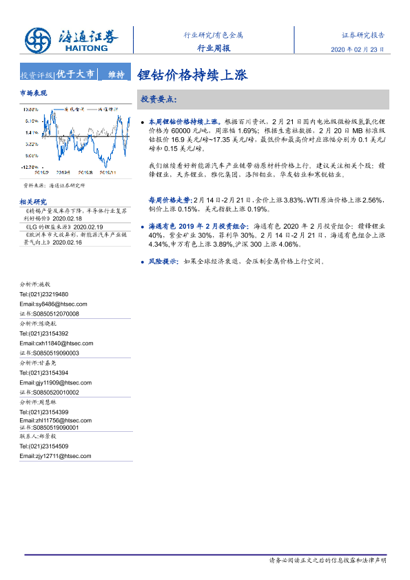 【海通证券】【20200223】20200223-海通证券-有色金属行业周报:锂钴价格持续上涨-8页