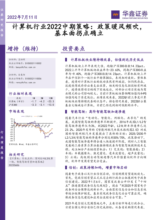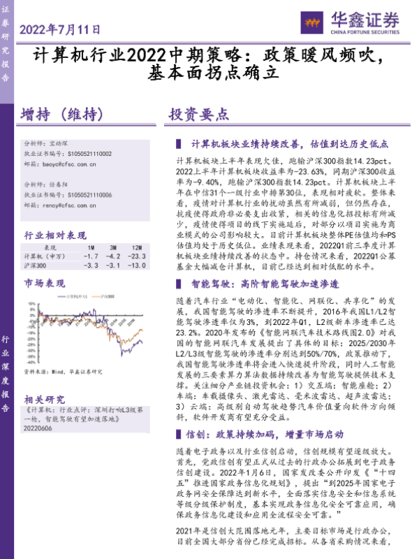 【华鑫证券】【20220711】计算机行业2022中期策略:政策暖风频吹,基本面拐点确立-35页
