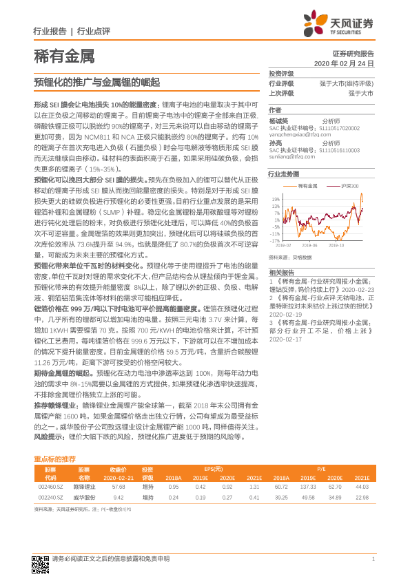 【天风证券】【20200224】20200224-天风证券-稀有金属行业点评:预锂化的推广与金属锂的崛起-2页