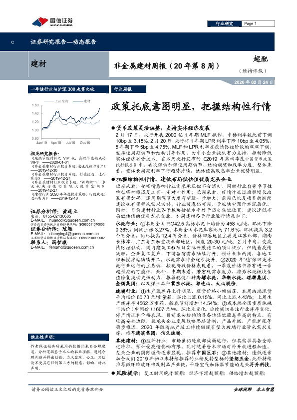 【国信证券】【20200224】非金属建材周报(20年第8周):政策托底意图明显,把握结构性行情-15页