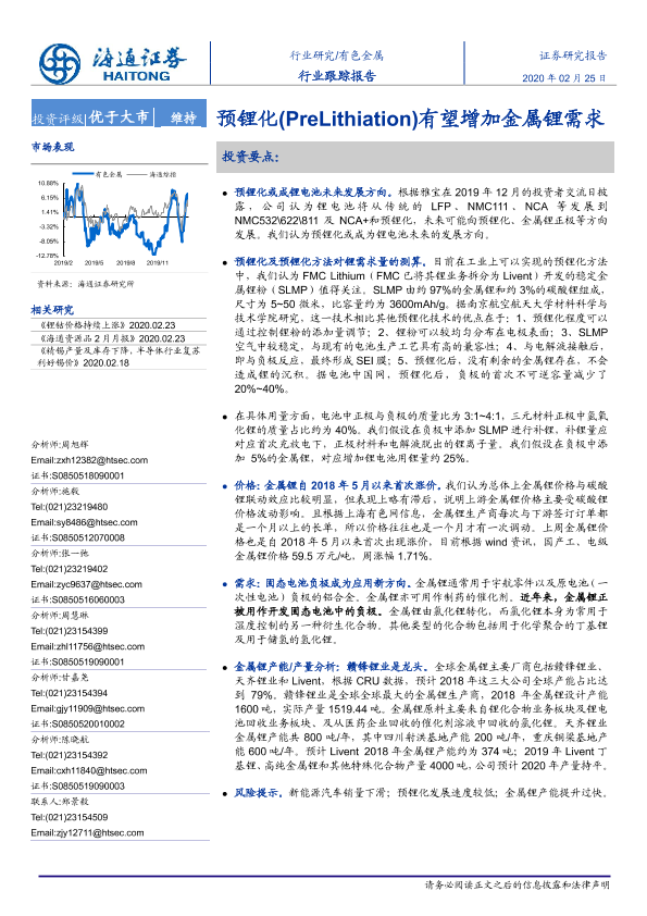 【海通证券】【20200225】有色金属行业跟踪报告:预锂化(PreLithiation)有望增加金属锂需求-7页